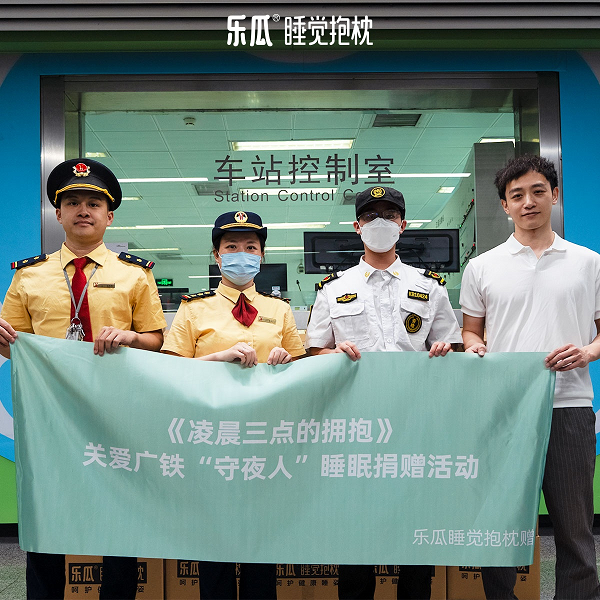 作为城市轨道交通安全的“守护者”,广铁众多一线工作人员长期处于昼夜轮换的工作节奏中,睡眠时间不规律、休息环境受限成为他们普遍面临的现实挑战。今年世界睡眠日,FUNMELON乐瓜延续“凌晨三点的拥抱”这一公益倡导,将目光聚焦于这些在工作岗位上辛勤付出的一线工作者,向他们捐赠品牌明星产品——乐瓜睡觉抱枕(Sleeping Hug Pillow),希望通过一份柔软的陪伴,帮助他们改善睡眠质量,在忙碌的夜间工作中也能获得片刻温暖。