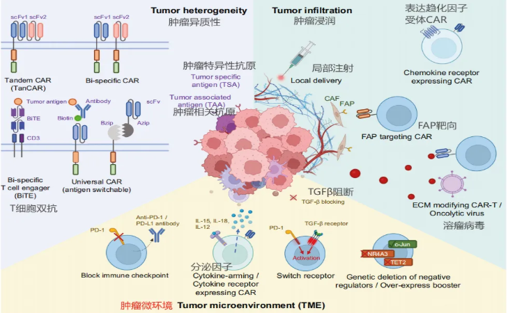 实体瘤之所以成为免疫疗法的“硬骨头”,核心难题在于肿瘤会形成致密的细胞外基质和免疫抑制微环境——如同为自己筑起“铜墙铁壁”,让多数免疫细胞难以穿透、无法深入核心作战。