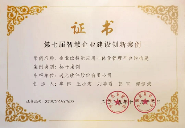 远光企业级智能应用一体化管理平台获评“第七届智慧企业建设创新案例”