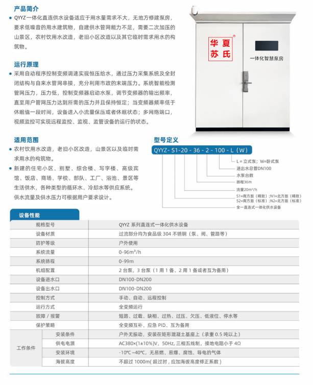 二、华夏苏氏一体化泵站技术参数详解