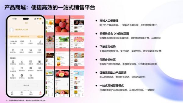 产品创造性地将轻量级商城系统嵌入商务社交场景。企业可便捷展示产品、管理库存、发起促销活动,并配置灵活的分销规则。这一设计彻底革新了传统商务流程,使得“建立联系-激发兴趣-完成交易”能够在同一场景内瞬时完成,极大压缩了价值传递的路径,提升了商务社交的即时变现效率。